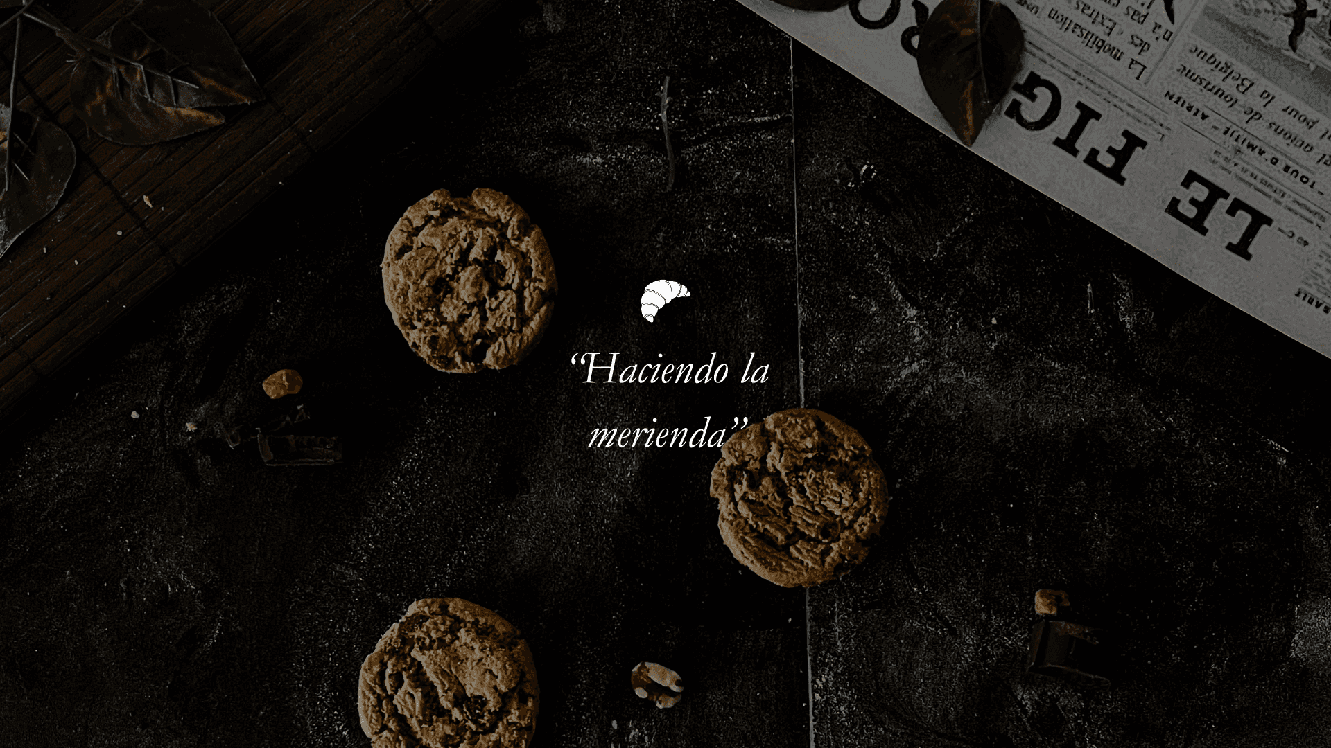 “Haciendo la merienda” muestra un día de invierno en la ciudad, con el cielo nublado y el clima frío; de igual manera, las galletitas con chispas chocolate recién salidas del horno y las medialunas esperan en la mesa.